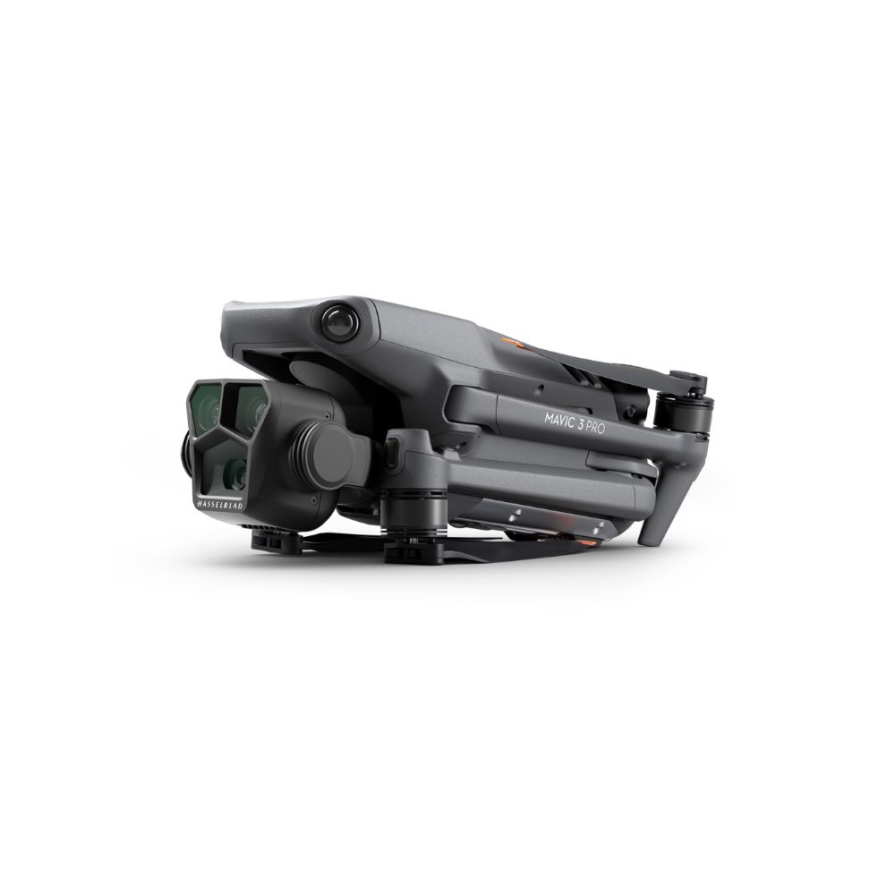 Sistema de tri-câmera emblemático do Mavic 3 Pro conta com uma câmera CMOS Hasselblad 4/3, uma câmera tele de 70 mm e outra de 166 mm, possibilitando a criação de trabalhos impressionantes em diversos cenários.