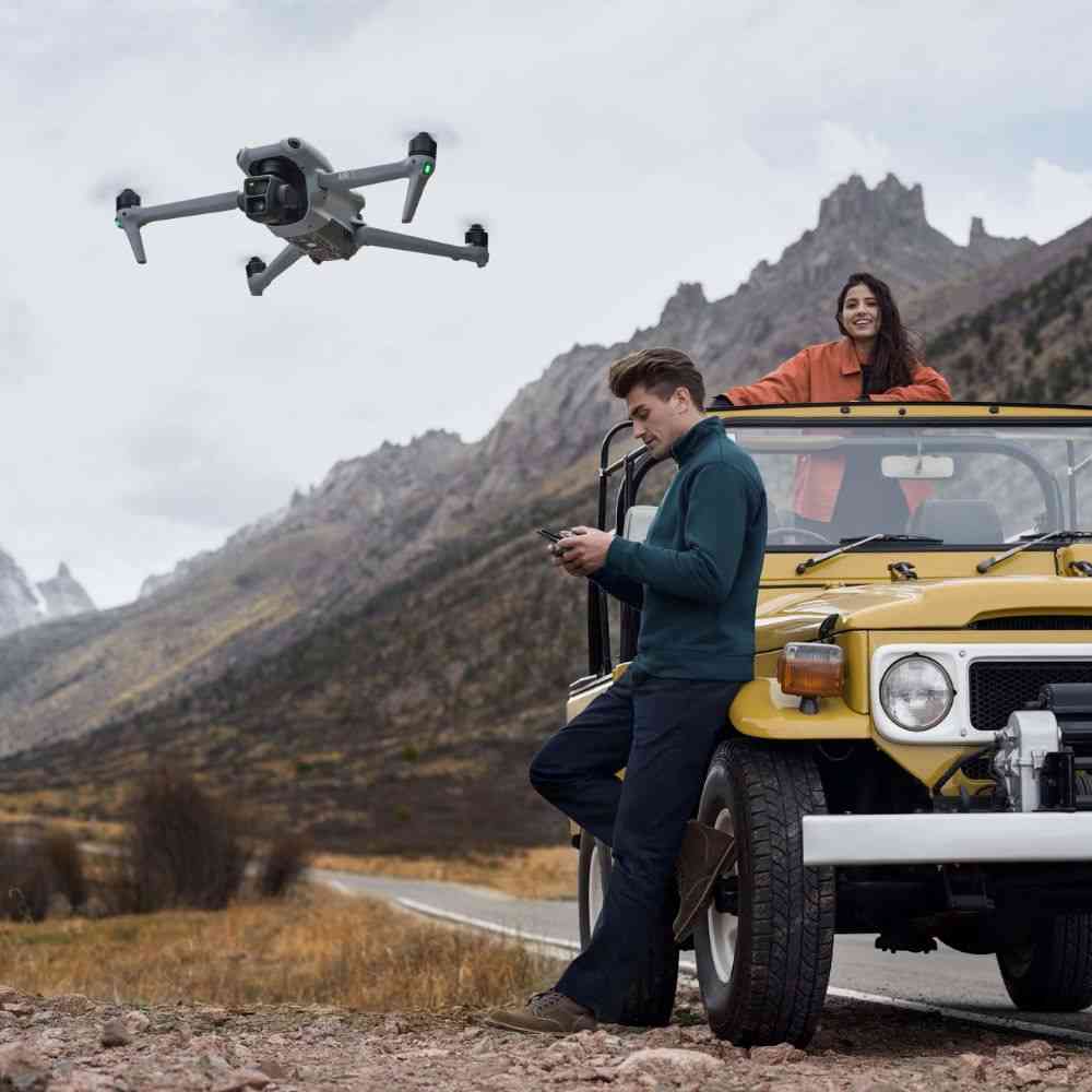 O DJI Air 3 inaugura o primeiro sistema de câmeras duplas principais da Série Air, fundindo uma câmera grande-angular com uma câmera Tele média em uma estrutura compacta.