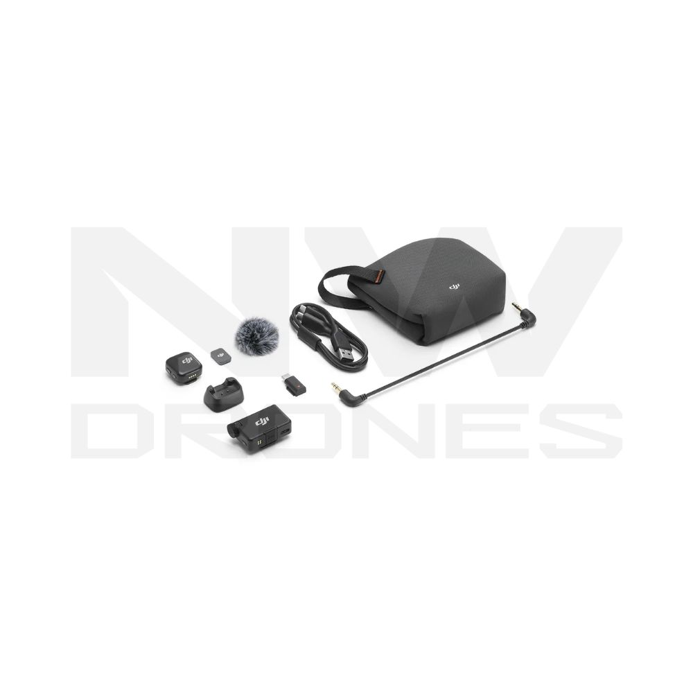 O estojo de carregamento do DJI Mic Mini armazena transmissores, receptor e acessórios, como protetores contra vento, com eficiência. Compacto e prático, o conjunto é ideal para transporte e uso imediato, tornando o microfone uma solução portátil e confiável para qualquer cenário de gravação.